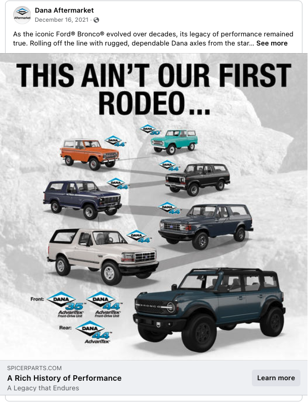 Dana/Ford Bronco Social Media Advertising